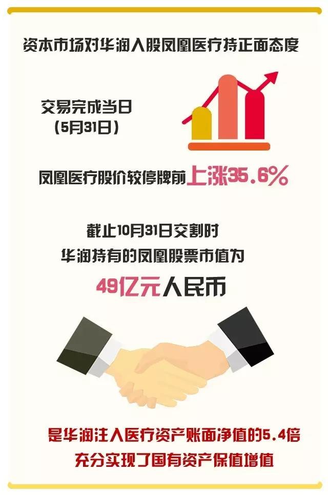 混合所有制的目標(biāo)是啥?是促進(jìn)國有企業(yè)轉(zhuǎn)換經(jīng)營機(jī)制,放大國有資本功能。華潤控股整合鳳凰醫(yī)療、中信醫(yī)療,增強(qiáng)國有資本對上市公司的主導(dǎo)力度,以11億國有資本(華潤累計投入的資本)撬動約88億元的社會資本,擴(kuò)大了上市公司的產(chǎn)業(yè)規(guī)模和全國布局。